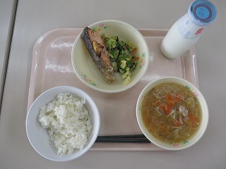 ごはん 鮭のムニエル おひたし とり野菜 牛乳