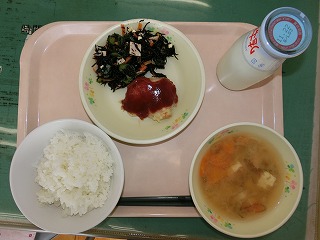 ごはん さんまの蒲焼き ごま酢あえ のっぺい汁 牛乳