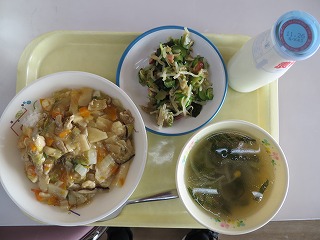 中華丼 さっぱり中華サラダ 中華スープ 牛乳