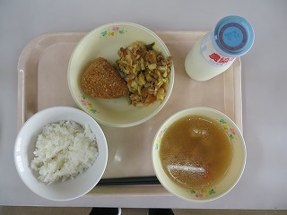 ごはん かぼちゃのひき肉フライ 回鍋肉 いものこ汁 牛乳
