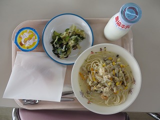 バターロール スープスパゲティ 海藻サラダ お月見ゼリー 牛乳