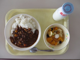 夏野菜カレー サラダ フローズンあんず 牛乳