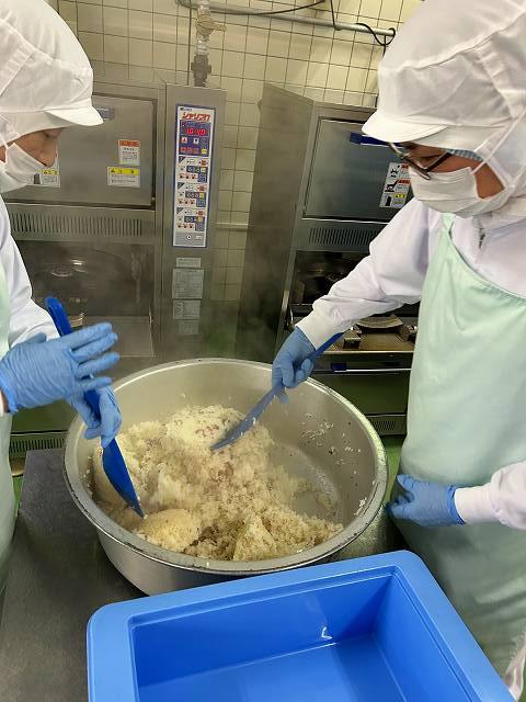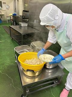 ちくわにからめて揚げます。見た目は地味な料理ですが、調理員さんの手間がかかっています。子どもたちにも人気があります。