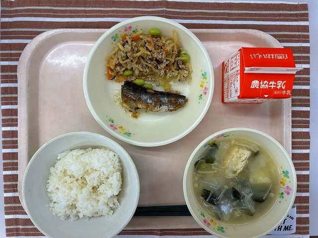 今日は和食です。いわしのおかか煮は、骨まで加圧してあるのでパクパク食べられます。魚が苦手な子が多いですが、成長期にしっかり食べて欲しい食品です。