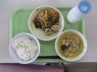 ごはん シューマイ 麻婆春雨 豆腐の中華煮 牛乳