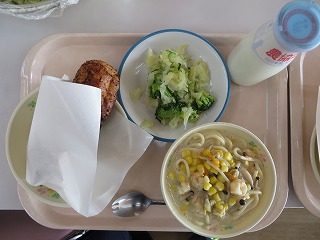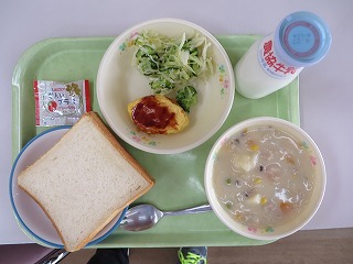 食パン クリームシチュー オムレツ サラダ ジャム 牛乳
