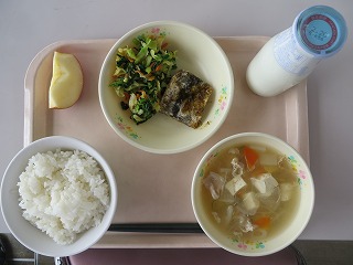 ごはん 魚の蒲焼き おひたし さつま汁 りんご 牛乳