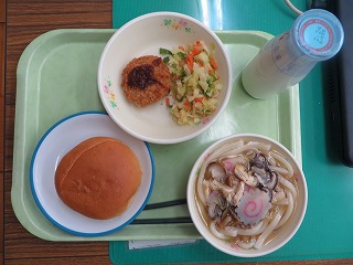 カツサンド なめこうどん 野菜ソテー 牛乳