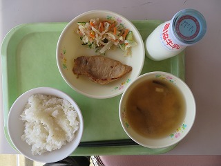 ごはん 豚肉の生姜焼き 大根サラダ みそ汁 牛乳