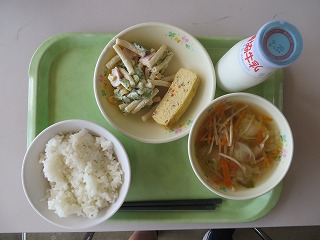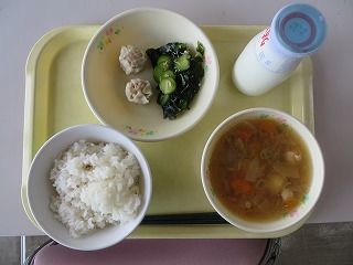 ごはん シューマイ しらすあえ すいとん風煮 牛乳
