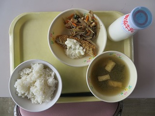 ごはん 魚のフライ 五目きんぴら みそ汁 牛乳
