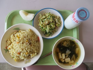 カレーピラフ わかめスープ シーチキンサラダ なし 牛乳