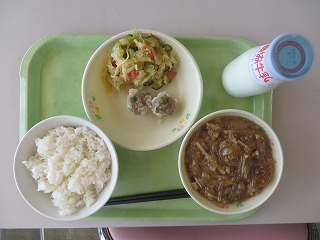 ごはん 麻婆春雨 シューマイ 和風サラダ 牛乳