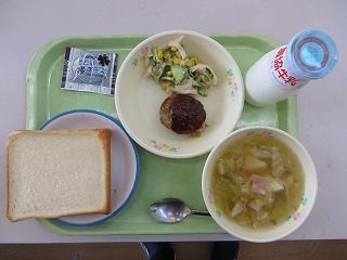 食パン ポトフ 焼きハンバーグ 大根サラダ ジャム 牛乳