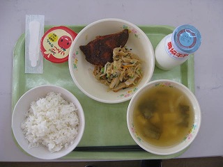 ごはん あじの南蛮漬け きんぴらごぼう みそ汁 牛乳