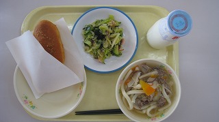 きなこパン 肉うどん 海藻サラダ 牛乳