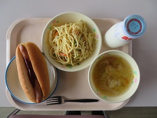 ウインナーサンド 和風スパゲティ スープ 牛乳