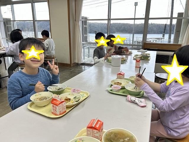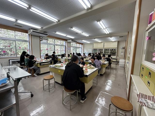最後の給食もランチルームが使えないため、家庭室での食事でした。6年生が卒業して全校児童30人、最後の給食も楽しくおいしく食べることができました(^▽^)