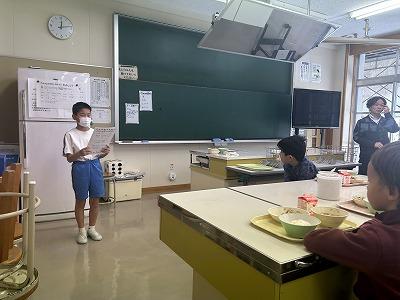 今日も給食員会の児童が発表してくれました!1年生も真剣に聞いていました。