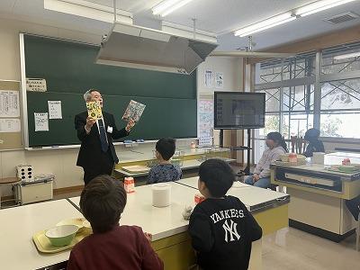 今日も給食委員会から石川県の給食についてお話してもらいました。校長先生からは給食にちなんだ本を紹介していただきました。給食についてたくさん学べる週間になるといいですね。