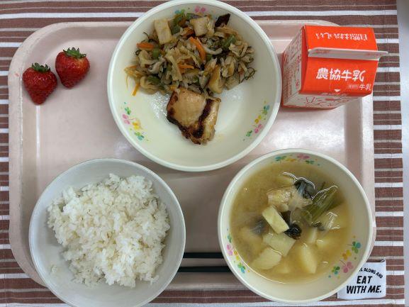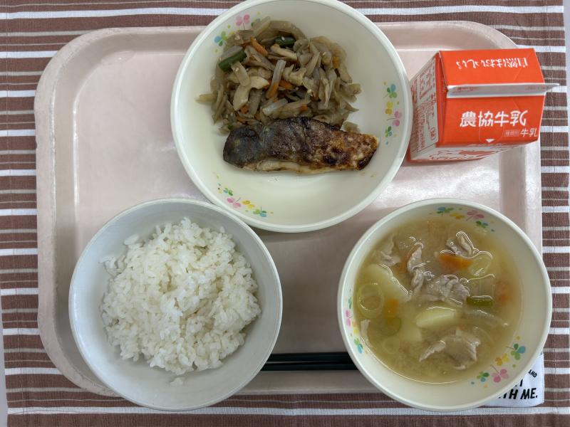 今日の主菜は、「ふくらぎの塩こうじ焼き」です。塩こうじとみりんに漬け込み焼きました。塩こうじの効果で、ぱさつきがちなふくらぎもやわらかく焼きあがりました。