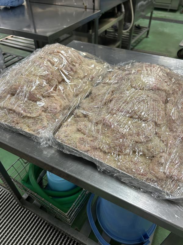 今日の主菜は「とんかつ」です。調理場で1つ1つ手作業で衣をつけました。手作りのものはやっぱりおいしいですね!2年生の児童が昨日からとっても楽しみにしてくれていました。