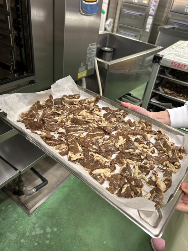 今日は初めてのメニューの「ジンギスカン」を提供しました。北海道滝川市のB&G財団様からの支援物資です。