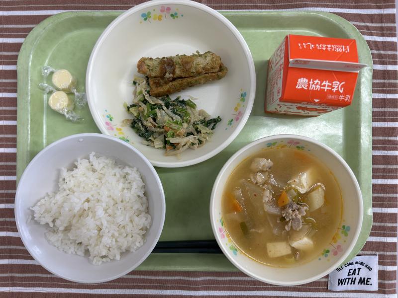 ピリ辛豚汁は穴水町の定番メニューです。いつもの豚汁にキムチを少し入れてピリ辛に仕上げています。低学年の子どもたちにも食べやすいように仕上げています。