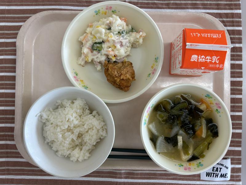 今日は急遽メニュー変更することになってしまい、申し訳ありません。主菜にも汁物にもたまごが入るというイレギュラーな給食になってしまいましたが、子どもたちはそんなことな気にせず、ごはんにミートソースオムレツを乗せて、「オムライスや!」と喜んで食べてくれました。
