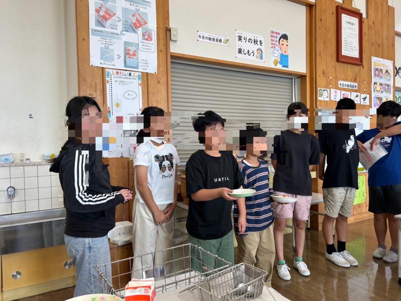 今日の給食は穴水中学校の1年生は家庭科の授業で考えた献立です。栄養バランスだけでなく、彩りや地場産物、ネーミングなどたくさんのことに気をつけて考えてくれました。どれもおいしく仕上がりました!