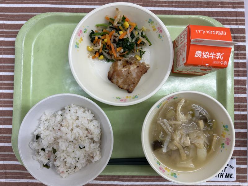 給食時間には、目の健康にいい食べ物は「色の濃い野菜」やブルーベリーなどの色素の「アントシアニン」ということを話しました。また今日は「ノーテレビ・ノーゲームデー」なので、目の健康のために意識して取り組めるといいですね。
