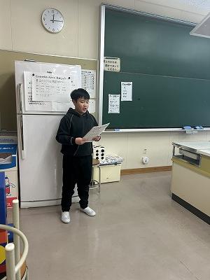 また、毎日給食委員会がその日の献立について発表します。今日は、北海道メニューについての紹介です。みんな真剣に聞いてくれました。給食時間が終わってからは、給食の歴史についても発表しました。給食が始まった明治時代の写真や、おじいちゃん・おばあちゃん世代の給食、お父さん・お母さん世代の給食、令和の給食など給食の移り変わりを知ることができました。給食委員会の子供たちも1回の練習でしたが、上手に発表することができました。