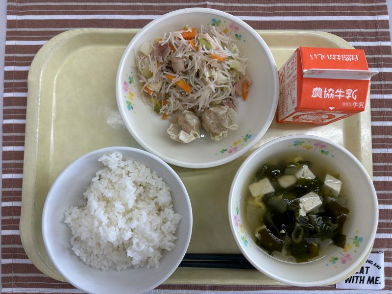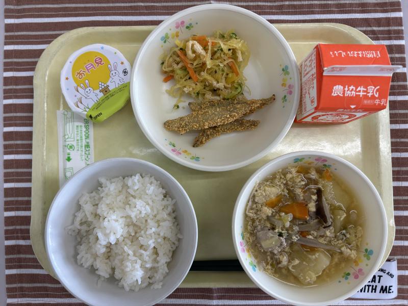 汁物は、かもうりのスープです。食べなれていないのか不思議そうに「これ何?」という声が聞こえてきました。味がしみ込んでおいしかったです(^^)