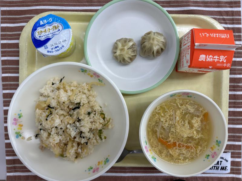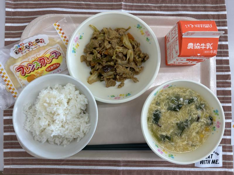 今日の給食は、中華料理です。回鍋肉は1学期にも提供しましたが、今日は「なす」を入れて作りました。