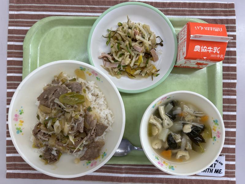 今日の牛丼には、JAのと様が提供してくださった「能登牛」を使いました。大きなカットのお肉で、とても柔らかくて香りもよく、子どもたちもモリモリ食べてくれました!ごちそうさまでした!