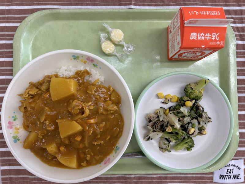 今日から2学期の給食が始まりました。初日は、食べやすいように定番のポークカレーです。