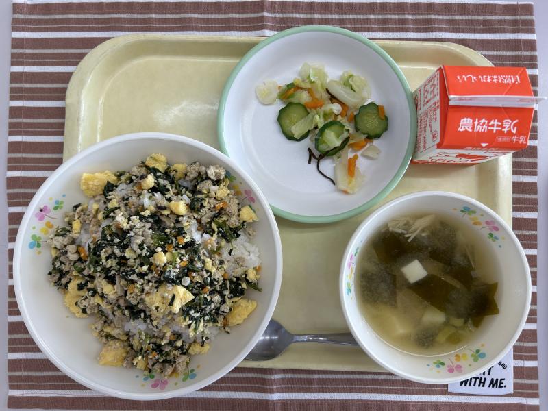 今日の副菜は、切干だいこんのそぼろ炒めです。よく噛んで食べる習慣をつけてほしいので、しっかり噛みごたえが残るように調理しました。肉のうまみで食べやすい炒めものに仕上がりました。