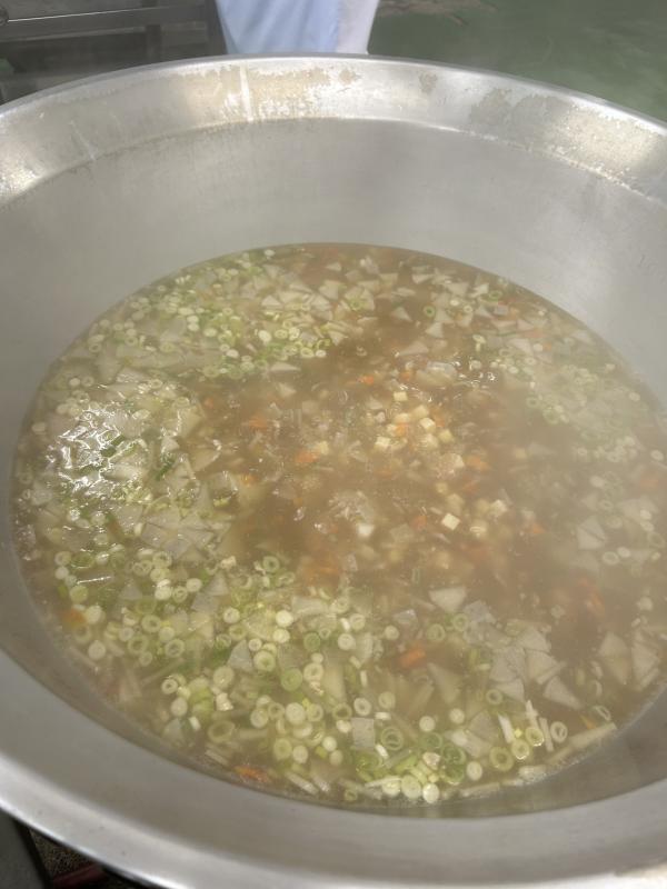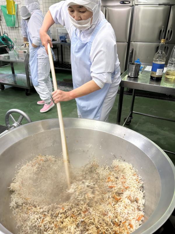 今日は午前中にまさかの停電!ごはんは炊けていて蒸らし段階だったためギリギリセーフでした。あげものやサラダ、汁物は電気のつかない調理場でなんとか作業し、無事仕上げることができました。