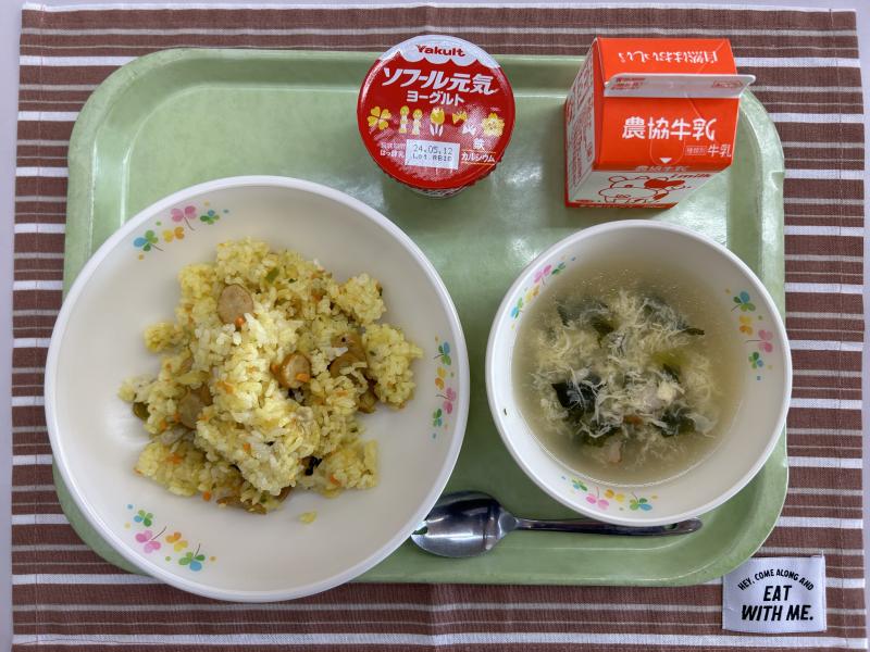 今日は、みんなが大好きなわかめごはんでした!向洋小では、調理場でごはんを炊いているので、