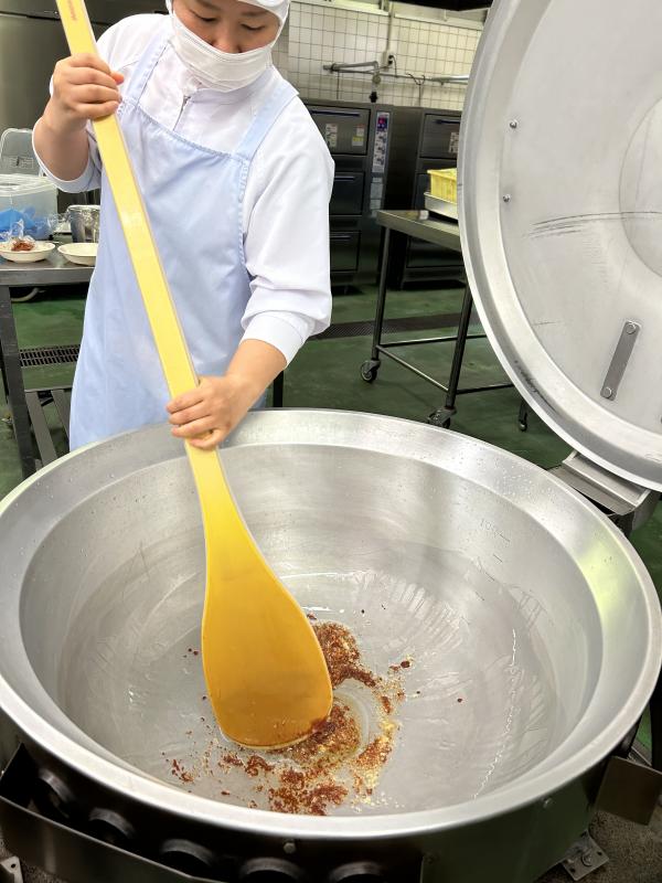 混ぜます。汗をかきながらの大変な作業ですが、みなさんの喜ぶ顔を思い浮かべて頑張っています!