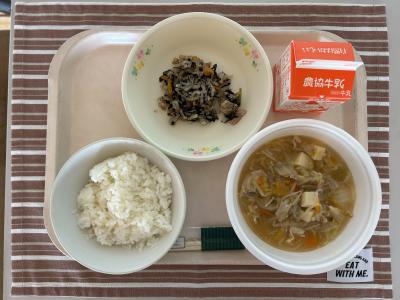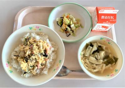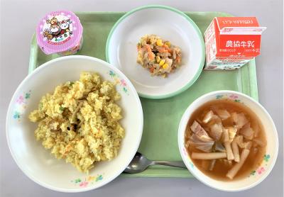 今日はご飯を炊かなくてもよい日なので、主食・主菜・副菜・汁物がそろった給食をだすことができました。