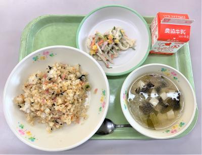 チャーハン(特別栽培米使用)、中華スープ、大根サラダ、牛乳