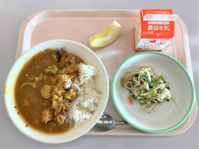ポークカレー、ごま酢和え、りんご(穴水町産)、牛乳