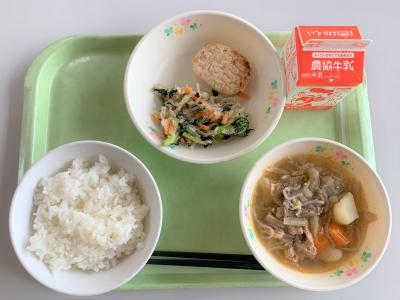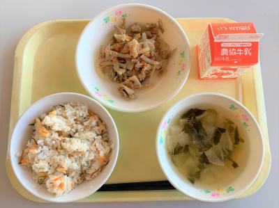 ツナごはん、みそ汁、五目きんぴら、牛乳
