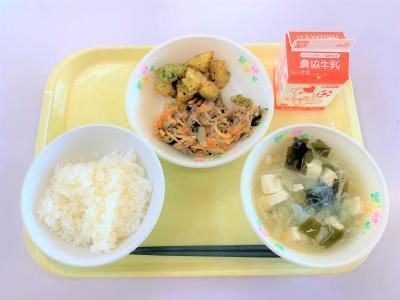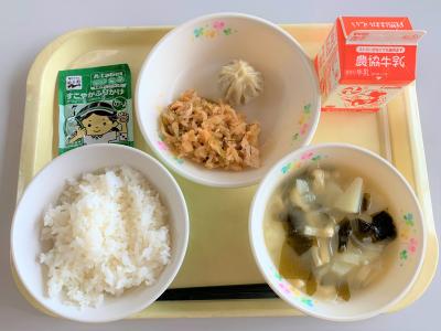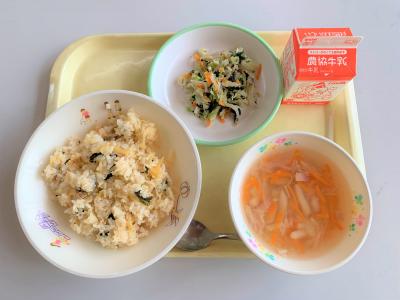 キムタクごはん、せん切りスープ、磯辺和え、牛乳