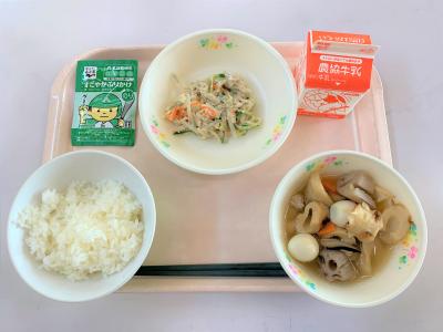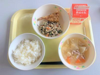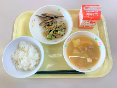 ごはん、ハタハタのいしる風味揚げ、切干とひじきのごまマヨサラダ、豚汁、牛乳