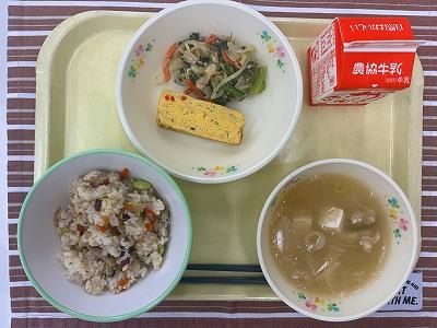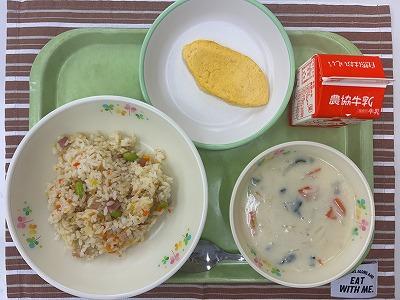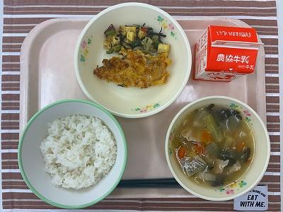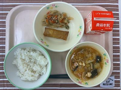 ※今日は、向洋小学校で研究大会があるため、お盆なし、使い捨て容器での給食になりました。