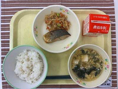 今日の給食は、地場産物がたっぷりです。ふくらぎ、切干大根、豚肉、たまご、干ししいたけが、石川県産や穴水町産です。味わっていただきましょう。
