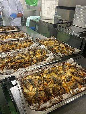 今日の主菜は、「ふくらぎのしょうがみそ焼き」です。しょうがやみそを合わせた調味料にふくらぎを漬け込み、オーブンで焼きました。ごはんに合う味に仕上がっています。