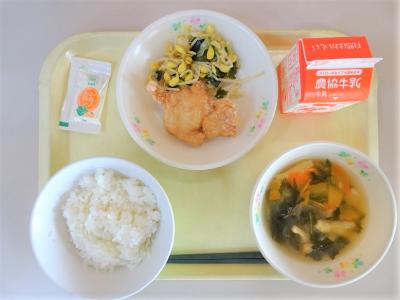 ごはん、チキン南蛮、もやしのナムル、かぼちゃと小松菜のみそ汁、牛乳
